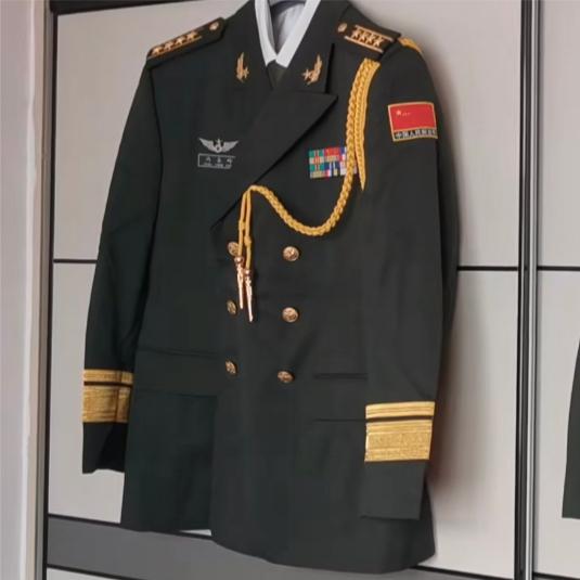 板正有型的深绿色礼服上,一条金黄色的绶带自左肩垂下,悬挂在胸口中间位置,显得十分贵气。